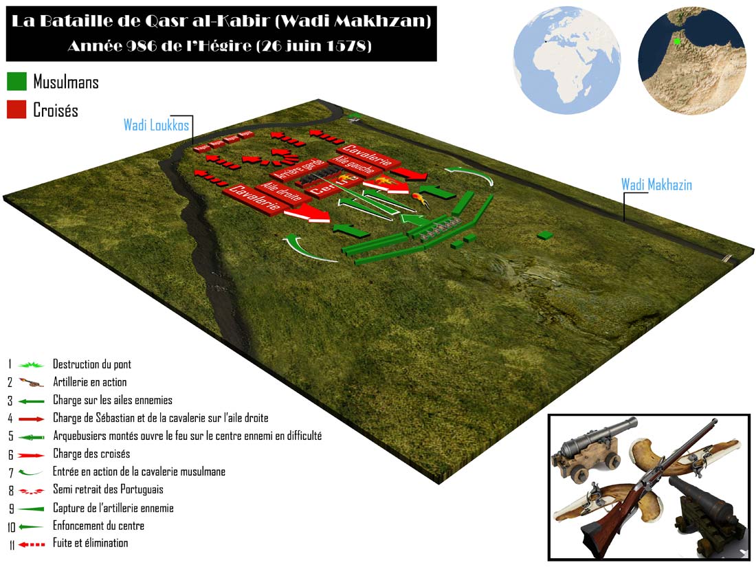 - La corne droite face au roi Sébastien et sa cavalerie,