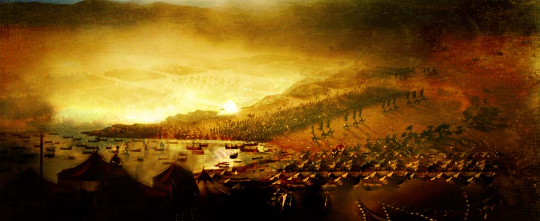 fit camper son armée sur la rive opposée, il donna l’ordre de couper