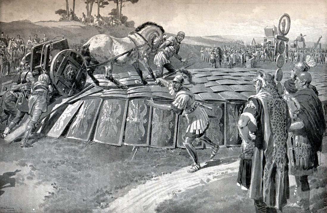 les Romains firent de même. Ils pendirent des drapeaux sur les murs